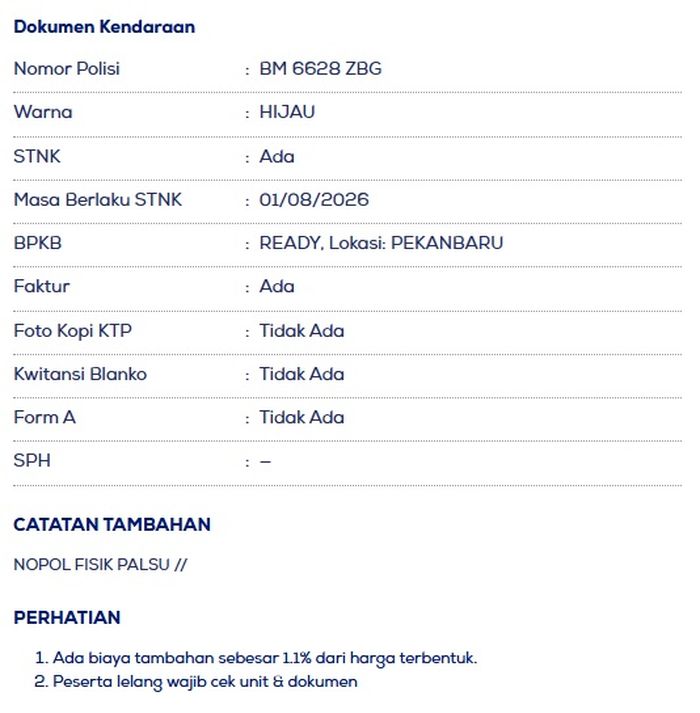 Berikut keterangan Honda BeAT 2025 yang akan dilelang di Pekanbaru: