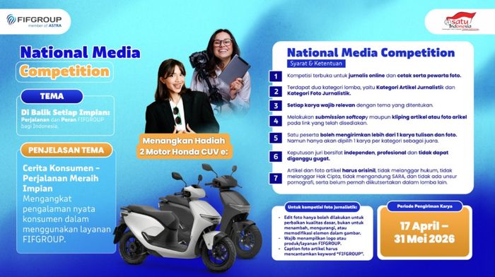 Kompetisi ini mengajak insan media untuk mengangkat kisah nyata masyarakat dalam memanfaatkan layanan FIFGROUP, sekaligus memperluas penyebaran cerita inspiratif yang berdampak bagi publik.