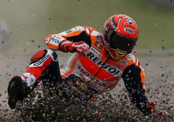 8 Tahun yang lalu - Marc Marquez hampir terjatuh di tikungan pertama namun berhasil menyelamatkan laju motornya. mengalami kecelakaan sebanyak 27 kali