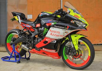 5 Tahun yang lalu - Kawasaki Ninja ZX-25R airbrush Valentino Rossi dari ARM Motor biayanya cukup Rp 6,5 juta termasuk cat pelek