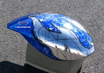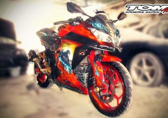 8 Tahun yang lalu - Langkah akhir, setelah semua proses terlewati, Tomi menutup gambar airbrush Transformer pada bodi modifikasi Kawasaki New Ninja 250 tersebut dengan balutan cat dan pernis Glasurit.
