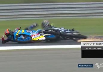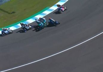 7 Tahun yang lalu - Aron Canet yang kehilangan kontrol motor saat melakukan pengereman jadi biang kerok. Motornya langsung menabrak Jorge Martin, Enea Bastianini