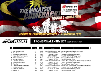 7 Tahun yang lalu - Terdaftar 13 pembalap dari 6 negara dari 8 tim balap yang mengikuti Asia Road Racing Championship kelas ASB 1000.