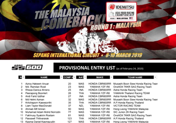 7 Tahun yang lalu - Saat ini di kelas SS600 cc Asia Road Racing Championship 2019 terdaftar baru 13 pembalap karena ada pemabalap SS600 yang naik ke kelas ASB1000.