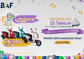 3 Tahun yang lalu - BAF yang akan genap berusia ke-25 tahun bakal memberikan puluhan motor baru Yamaha Fazzio dan Saldo Gopay