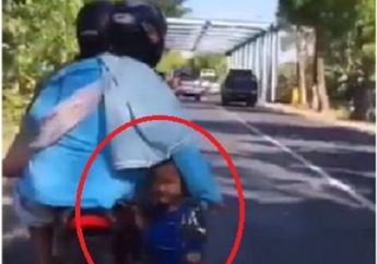 6 Tahun yang lalu - Anak kecil itu ditempatkan pada keranjang besi, mirip seperti keranjang untuk membawa galon di motor.