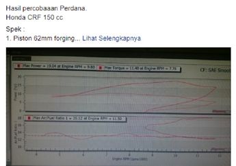 8 Tahun yang lalu - Baru-baru ini Tomy Huang bos BRT-Bintang Racing Team membuat postingan di akun facebook pribadinya mengenai riset upgrade mesin Honda CRF150L. Tomy Huang melampirkan foto grafik dyno tes yang menunjukan power mesin tercatat 19,04 hp.