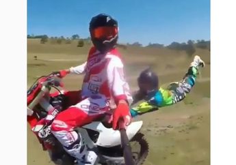 8 Tahun yang lalu - Kelihatannya sih memang pembonceng ini seperti sedang melakukan peregangan badan. Padahal, aksi ini lebih ekstrem dan sangat berbahaya.