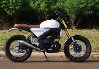 6 Tahun yang lalu - Yamaha V-Ixion bergaya scrambler garapan AKA Garage, terlihat mirip Yamaha XSR 155, memakai ban dual purpose yang enak dipakai main tanah.