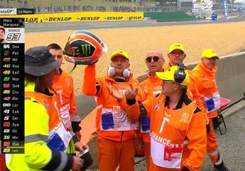 6 Tahun yang lalu - Alex Rins pembalap tim Ecstar Suzuki berikan helm Nolan X-Lite X-803 kepada seorang marshal MotoGP Prancis 2019 untuk bela sungkawa