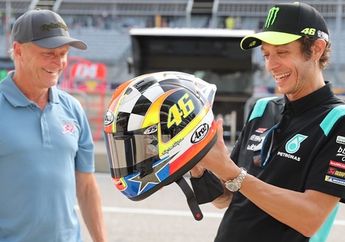 4 Tahun yang lalu - Valentino Rossi dapat hadiah helm Arai Corsair-X dari pembalap idolanya Kevin Schwantz jelang MotoGP Amerika 2021