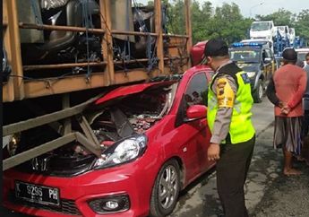 6 Tahun yang lalu - Tabrakan melibatkan truk, Honda Brio warna merah dan truk pengangkut motor Honda Scoopy di jalur Pantura, Jateng.