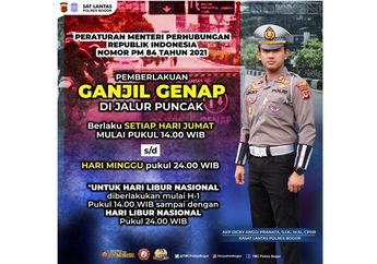 2 Tahun yang lalu - Jalur puncak diberlakukan ganjil genap dari Jumat (20/10) sampai senin (23/10). Berlaku untuk mobil dan motor.