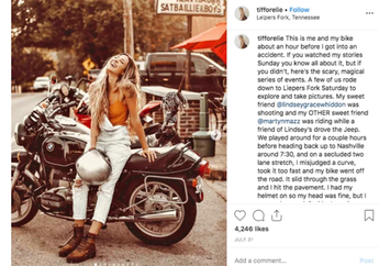 6 Tahun yang lalu - Seorang selebgram cantik bernama Tiffany Mitchell dihujat bikers karena mengunggah foto kecelakaan jatuh dari motor namun hanya rekaan