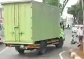 7 Tahun yang lalu - Pelat baja muatan truk terjatuh dan menimpa dua mobil, yaitu Mazda2 berwarna Hijau dan Honda Mobilio berwarna putih serta satu motor Yamaha Mio.