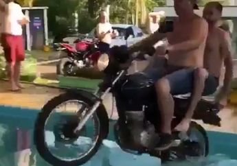 7 Tahun yang lalu - Entah apa yang ada dipikiran dua orang bule tersebut, hingga menceburkan sebuah motor ke dalam kolam renang.
