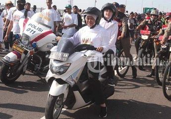 7 Tahun yang lalu - Gubernur Jawa Timur Khofifah Indar Parawansa sunmori naik motor Yamaha NMAX di acara Millennial Road Safety Festival sambil bonceng Arumi Bachsin