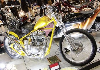 8 Tahun yang lalu - Pada awal Desember 2017 lalu, motor berwarna emas ini berangkat ke Jepang untuk dipajang di 26 th Yokohama Hot Rod Kustom Show 2017 di Jepang.
