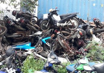 5 Tahun yang lalu - Kuburan motor massal di Jl. Wangun Harja ini penuh kendaraan bekas kecelakaan maupun hasil razia yang berjejer dan bertumpuk.