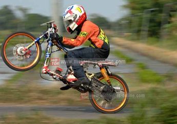 10 Tahun yang lalu - Untuk dapat waktu tercepat di trek lurus, selain skill dragster, performa tunggangan juga harus mumpuni. Nah, kebetulan Yamaha Mio drag bike andalan Bill Speed Wahana Baru RCB asal Bandung ini, dapat joki yang pas terus. Makanya
