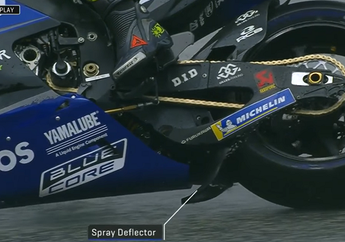 6 Tahun yang lalu - Spray deflector yang disematkan pada motor YZR-M1 milik Valentino Rossi pada latihan bebas FP3 MotoGP Jepang 2019.