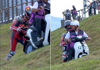 1 Tahun yang lalu - Motor listrik Yamaha NEO's kesulitan untuk nanjak saat hendak menolong pembalap, Pedro Acosta di MotoGP Italia 2024