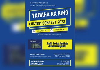 3 Tahun yang lalu - Yuk ikut kontes modifikasi motor Yamaha RX-King di 2023 yang bakal digelar di Stadion Pakansari Cibinong, Bogor!