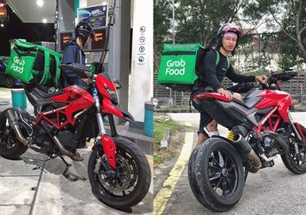 6 Tahun yang lalu - Herry Sevani biker dari Malaysia menggunakan motor Ducati Hypermotard 821 untuk mengantar orderan Grab Food