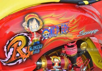 9 Tahun yang lalu - Agar kena dengan alur cerita One Peace, warna asli bodi Scoopy FI dicat ulang. Pengerjaannya diserahkan ke bengkel AHN Performance, yang merupakan spesialis painting dan airbrush. Di sana, seluruh permukaan baju Scoopy diberi lapisan kelir merah ngej