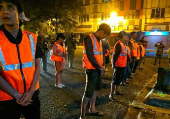 5 Tahun yang lalu - Mereka diminta berbaris dan menggunakan rompi oranye khusus yang bertuliskan 'pelanggar PSBB'
