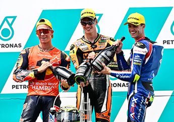 2 Tahun yang lalu - Podium Moto2 MotoGP Malaysia di sirkuit Sepang ada yang aneh, pemenang Fermin Aldeguer dan juara dunia Pedro Acosta tidak selebrasi buka botol sampanye