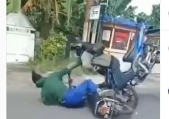 3 Tahun yang lalu - Ugal-ugalan, Lakukan aktraksi di jalan raya, pemuda dengan motor bebek lawas tertabrak pengendara lain yang melintas
