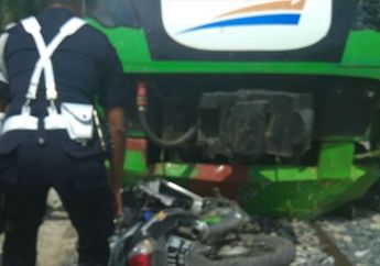 3 Tahun yang lalu - Motor Honda BeAT hancur berantakan setelah tertabrak kereta api di perlintasan sebidang ilegal di Bekasi