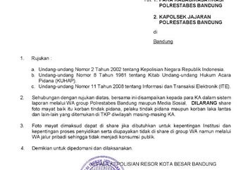 8 Tahun yang lalu - Perintah itu tertuang dalam surat yang dikeluarkan Kepolisian Negara Republik Indonesia Jawa Barat, resor Kota Besar Bandung, Jl. Merdeka 18-20 dengan nomor B/1418/V/2017/Restabes Bandung