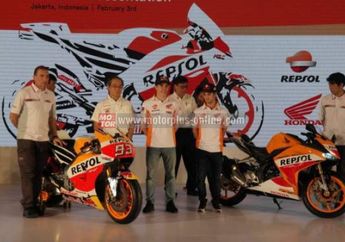 9 Tahun yang lalu - Sekali lagi, Indonesia menjadi salah satu negara yang menjadi pilihan bagi Repsol Honda Team untuk launching Honda RCV213V. Bertempat di JiExpo, Kemayoran, Jakarta Pusat (3/2), Marc Marquez dan Dani Pedrosa buka selubung alias penutup motor Honda RCV