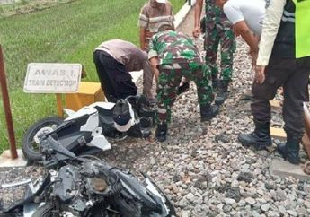 2 Tahun yang lalu - Insiden motor ditabrak kereta api terjadi di Kediri, Jawa Timur, Honda Vario rusak parah tapi pengendara selamat.