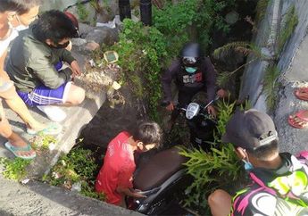 4 Tahun yang lalu - Bikin merinding, seorang pemotor tiba-tiba terjatuh ke selokan, warga sekitar menyebut lokasinya angker.