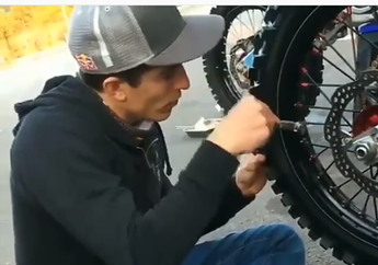 7 Tahun yang lalu - Pembalap MotoGP Marc Marquez setel pelek motor balap Honda sendiri, yaitu CRF450R yang dipakai untuk latihan fisik di trek motocross