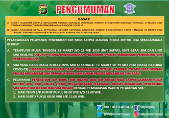 6 Tahun yang lalu - Untuk pembuatan SIM baru, SIM hilang dan SIM rusak pihak Polda Metro Jaya mesih membuka layanan tapi tidak untuk memperpanjang masa berlaku SIM