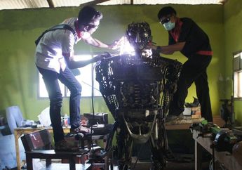 6 Tahun yang lalu - Didampingi instruktur, para siswa-siswi tersebut memilah baut, gir, dan bearing yang akan digunakan untuk membuat patung berbentuk robot polisi.