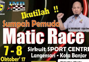 8 Tahun yang lalu - Gelaran matic race dalam rangka peringatan Hari Sumpah Pemuda akan digelar di Kota Banjar Jawa Barat pada Hari Sabtu-Minggu (7-8/10).