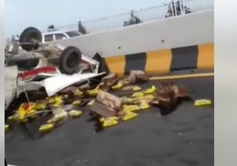 4 Tahun yang lalu - Kecelakaan menimpa mobil pick up yang berisikan minyak goreng di Jembatan Suramadu, Jawa Timur, Rabu (9/2/2022) sore.
