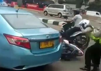 8 Tahun yang lalu - Insiden berbahaya di jalan raya kembali terjadi. Kali ini seorang anggota polisi terjengkang diserempet mobil taksi.