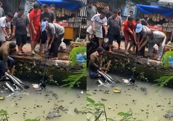 4 Tahun yang lalu - Benar-benar apes, motor tercebur kali di Jakarta Utara, warga langsung gotong royong angkat pakai tali