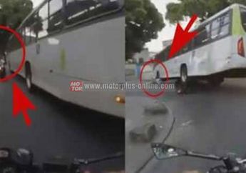 8 Tahun yang lalu - Sungguh diluar dugaan dengan apa yang terjadi ketika seorang bikers salip bus dari sebelah kiri hingga terlindas, namun beruntung nyawanya bisa selamat.