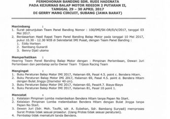 8 Tahun yang lalu - Rudi trijaya punya alasan kuat protes diskualifikasi pembalapnya