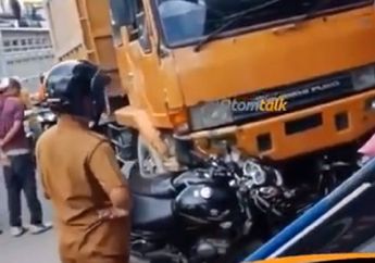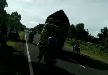 6 Tahun yang lalu - Karena melaju dengan kencang, Ikhsan tidak dapat mengendalikan kendaraan sehingga truknya oleng menabrak motor.